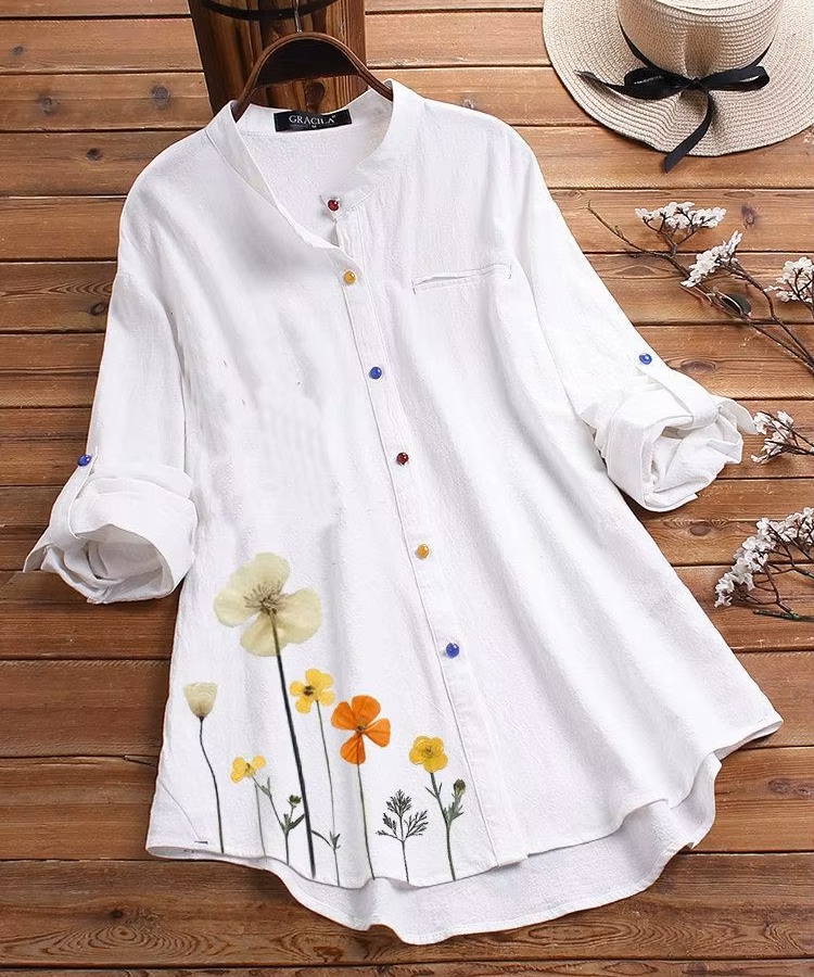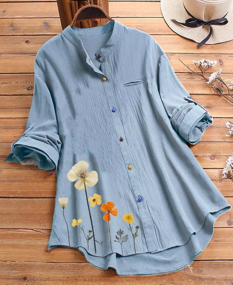 Women’s Floral Button Down Blouse | Classic Long-Sleeved Round Neck Shirt – 67% Off