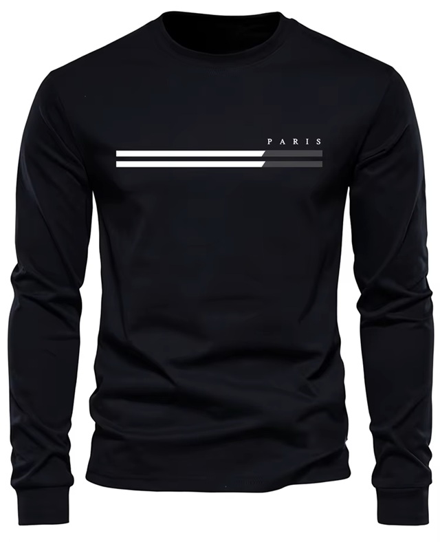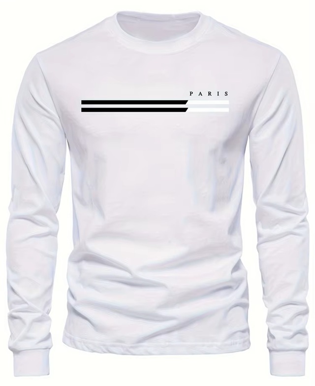 Mens Spring And Fall PARIS Print Long-Sleeve Casual T-Shirt