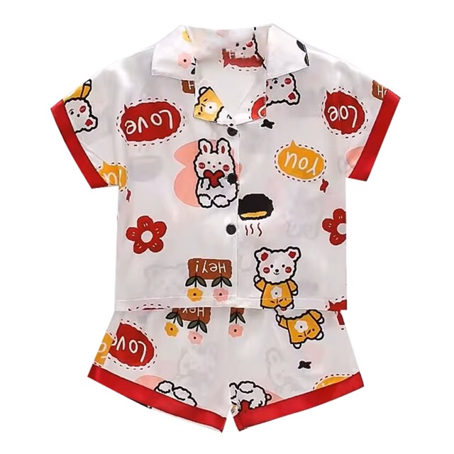 Satin Cartoon Pajama Set, Ice Silk For Both Boys And Girls