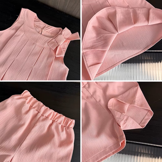 Sweet Pink Girls Summer Outfit – Sleeveless Bow Vest & Shorts Set (65% Off)