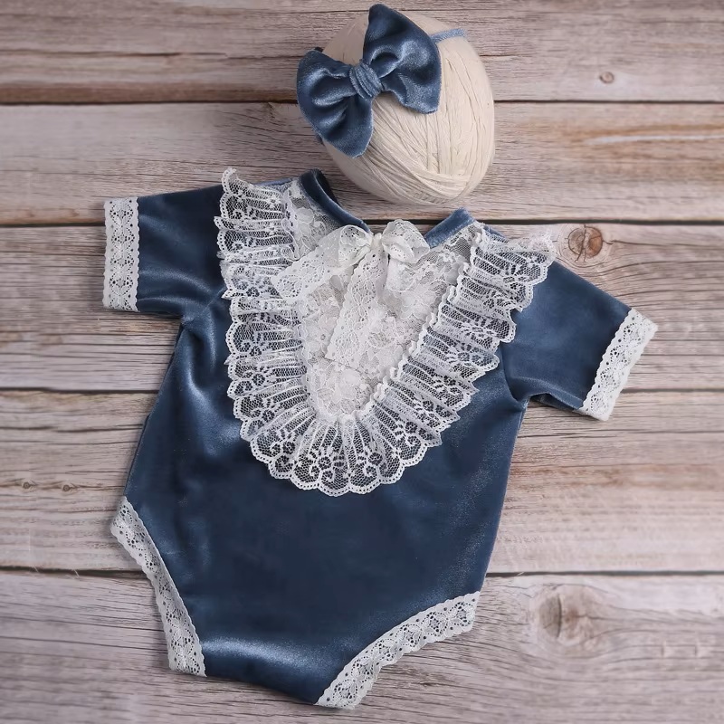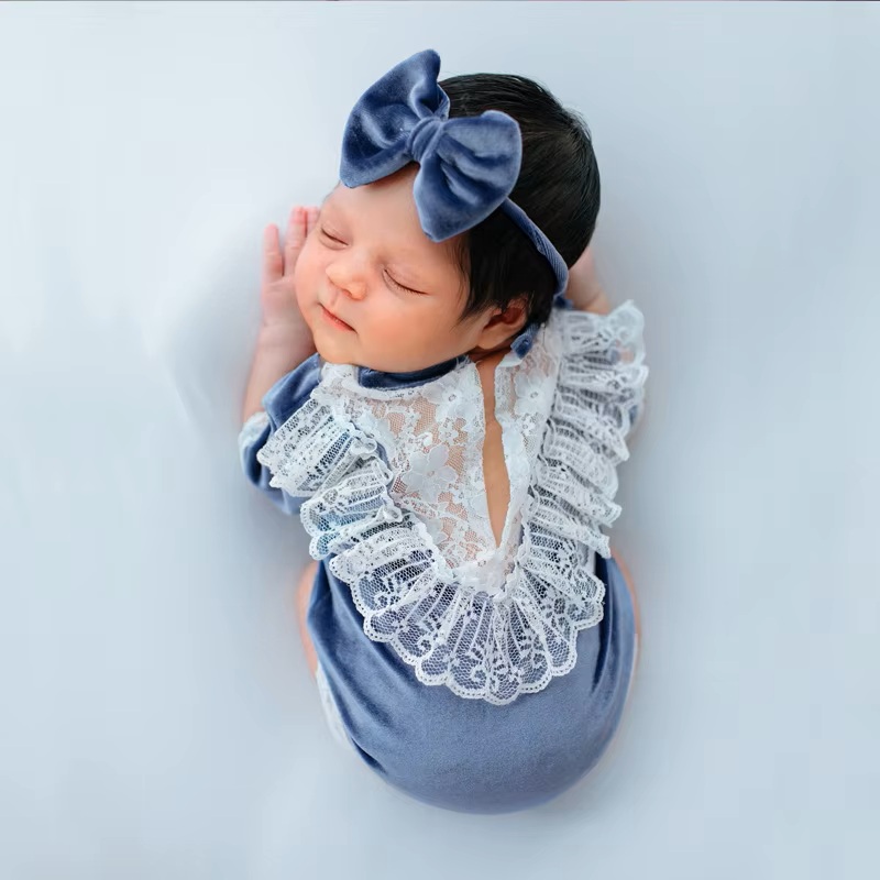 Ylsteed Velvet Blue Romper Set – 73% Off Baby Girl Photography Outfit